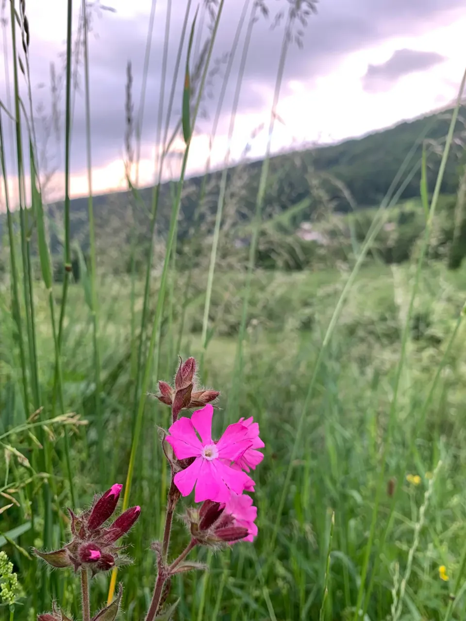 (3) Quitter le GR juste après le pont, et continuer tout droit (de nouveau le balisage jaune). Le parcours devient un chemin au profil montant. Environ 100 mètres plus loin, prendre le virage en épingle sur la droite, continuer à monter, puis franchir un deuxième virage en épingle. Rester sur la gauche pour suivre la voie. Le chemin longe une maison, puis continue sur environ 500 m jusqu’au prochain carrefour.